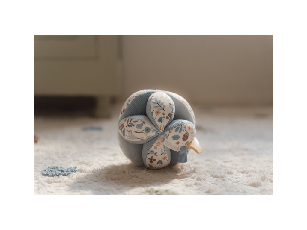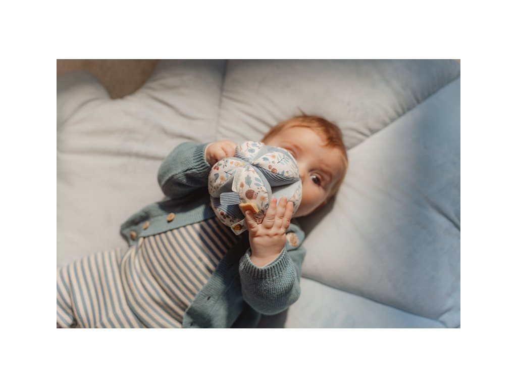 Měkký textilní míček je díky svému provedení snadno uchopenitelný malými dětskými ručičkami. Různorodé textury a vzory lákají dítě ke zkoumání, míček navíc při pohybu jemně cinká.Míček je součástí designové kolekce hraček Little Dutch Forest Friends inspirované životem v lese.
