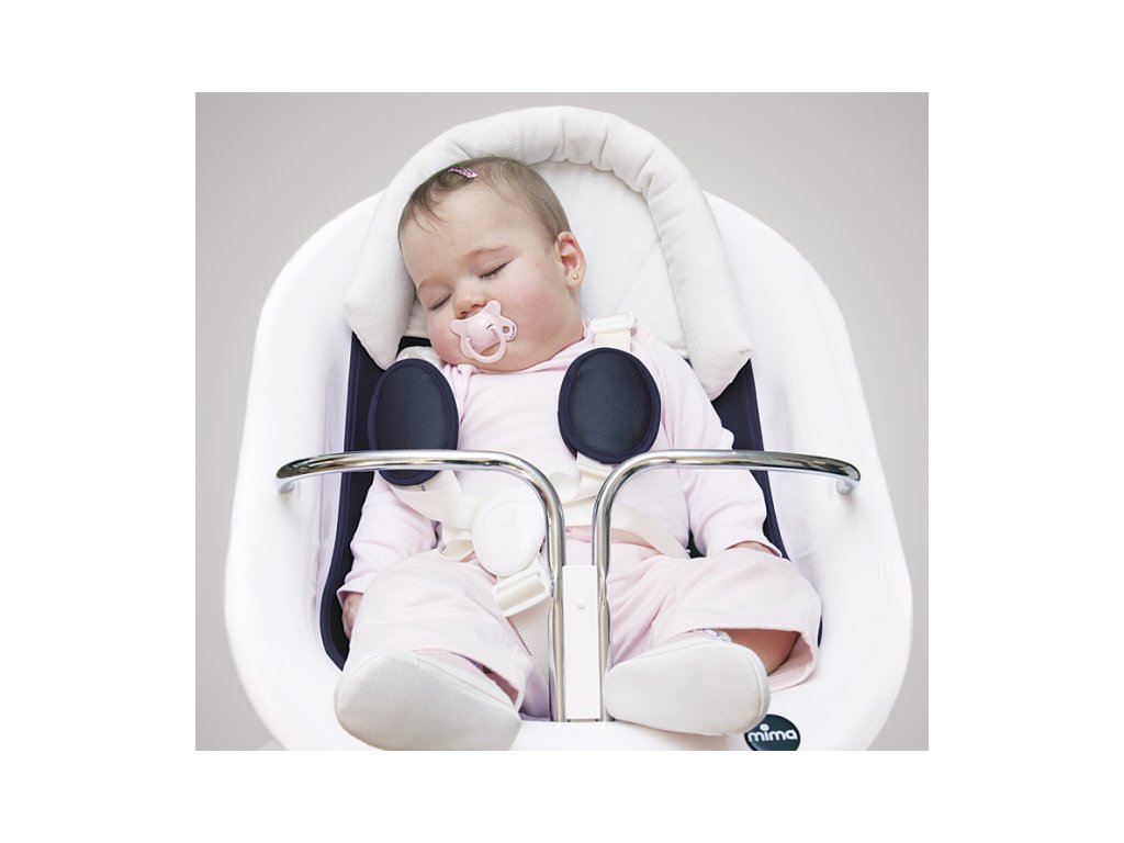Pro nejmenší miminka je tu vložka s opěrkou hlavy, pro batolata sedací podložka s pásy. V případě větších dětí je možné zakoupit sadu sedacích polštářků nebo podsedák pro malé děti. Španělská firma Mima vsadila na pevnou a stabilní konstrukci, která zajistí bezpečí pro vaše dítě.