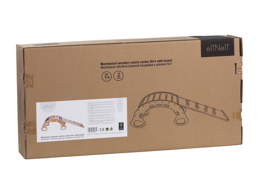 - Montessori houpačka + prkno 2v1 - set obsahuje oblíbenou montessori dřevěnou houpačku a oboustranné prkno (z jedné strany lezecká stěna, z druhé strany skluzavka).