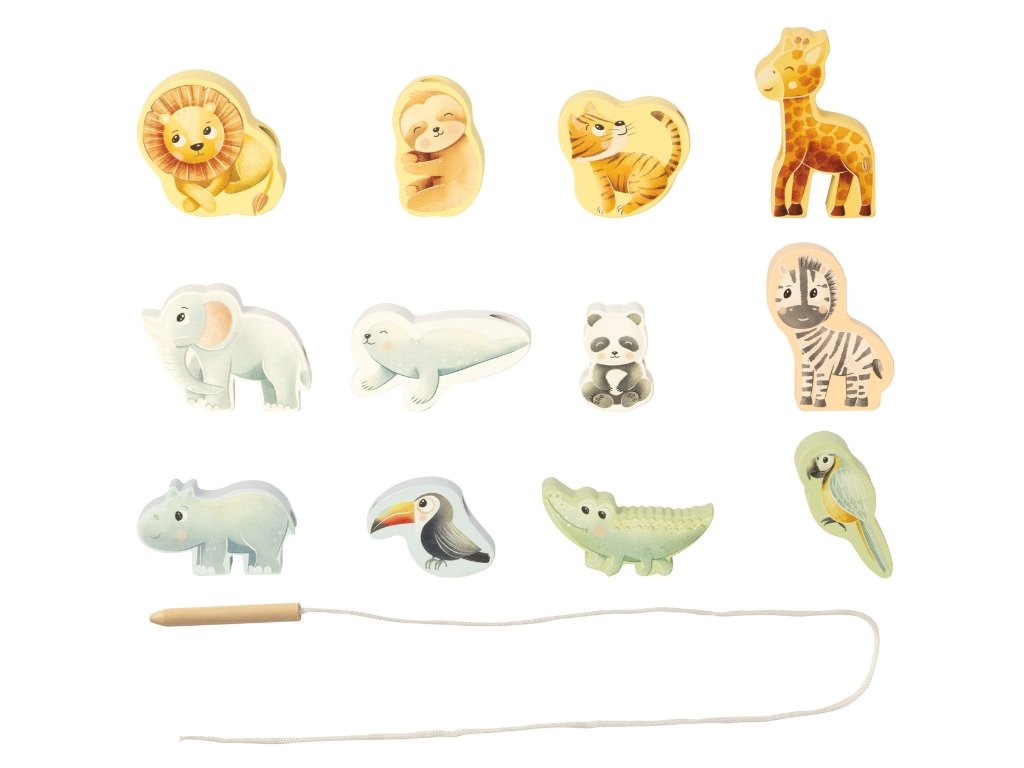 Navlékání korálků - dřevěná zvířátka ze ZOO