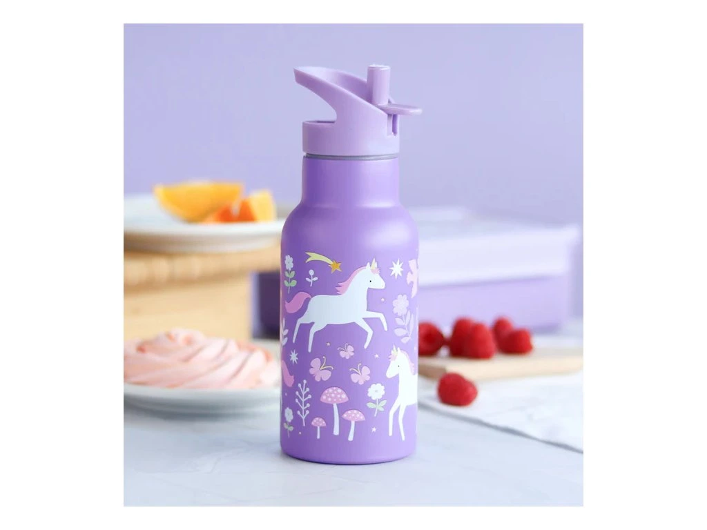 Dětská nerezová láhev s pohádkovým motivem jednorožců je lehká a ideální pro nošení do školy či na výlety.Láhev je dvouplášťová, takže udrží nápoje chladné.