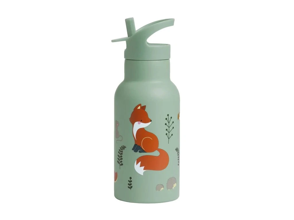Dětská nerezová láhev s motivem lesních zvířátek je lehká a ideální pro nošení do školy či na výlety.Láhev je dvouplášťová, takže udrží nápoje chladné.