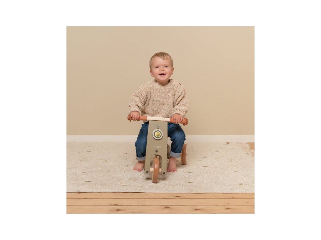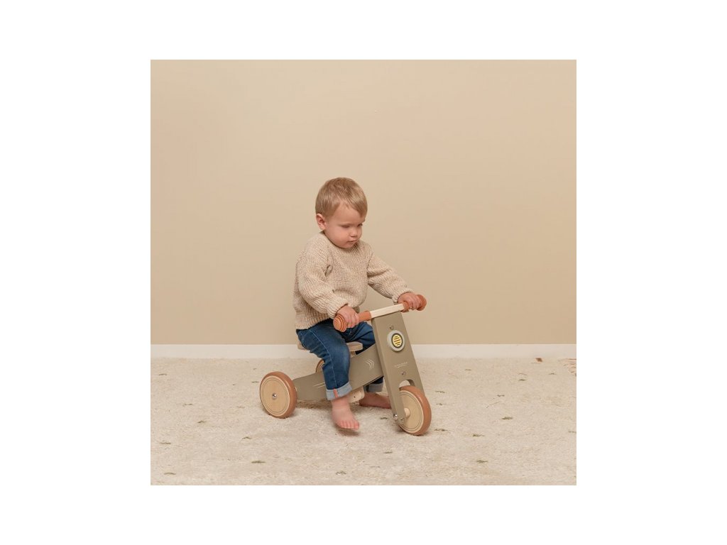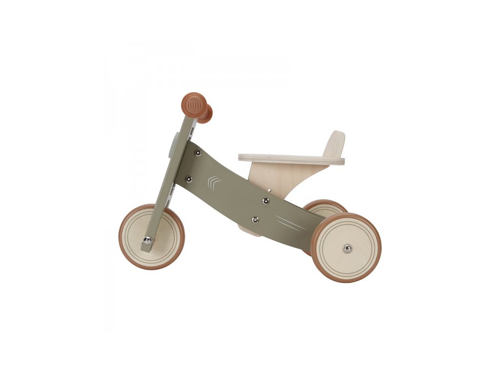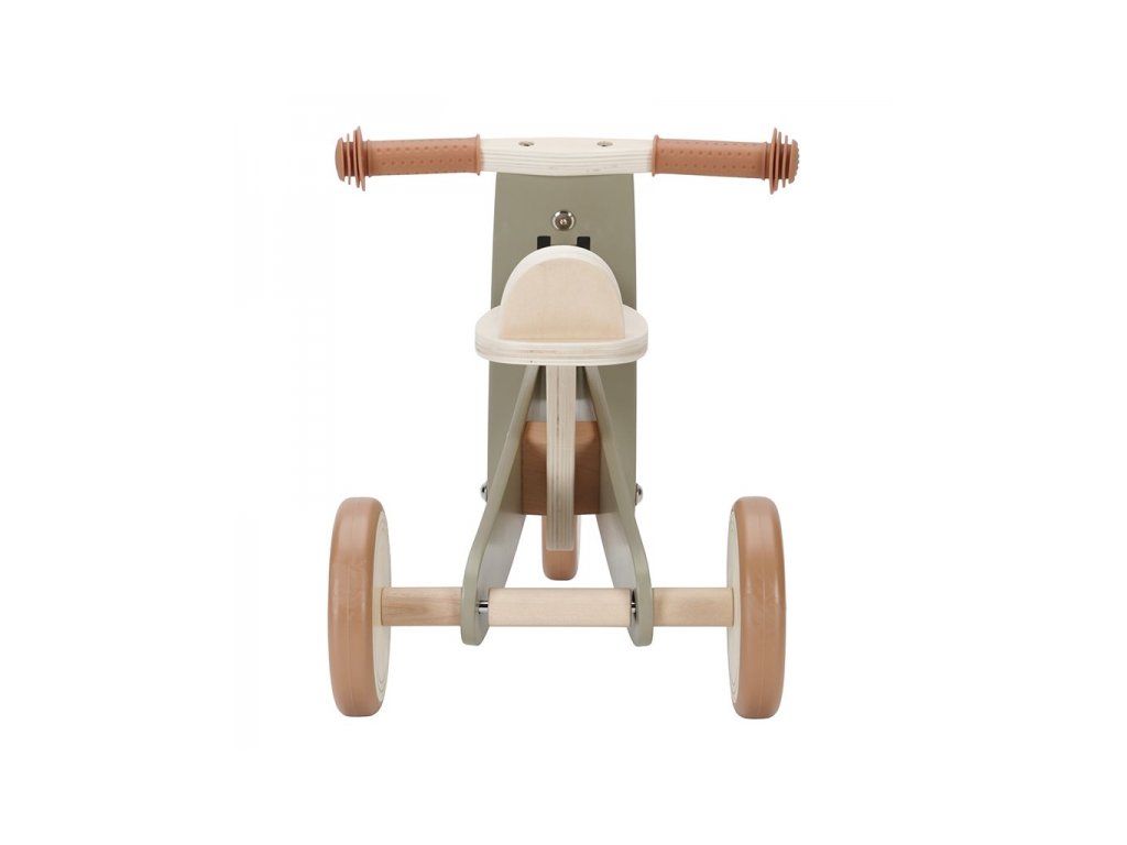 Dětské odrážedlo v krásném dřevěném provedení se třemi koly pro větší stabilitu. Kola mají pryžovou hranu pro hladkou jízdu, pryžové rukojeti řídítek poskytují příjemné držení a ovládání odrážedla.Robustní sedadlo umožňuje pohodlné a stabilní sezení.