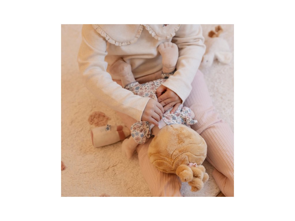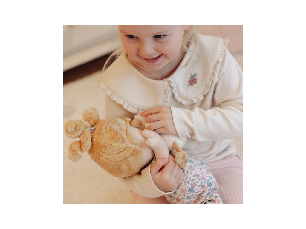 Něžná plyšová panenka Julia z měkkého jemného materiálu je připravena na spaní, oblečena do pyžámka, vybavená lahvičkou a plyšovou hračkou. Je vhodná na hraní i mazlení a bude se s ní i krásně usínat!Výplň je vyrobena ze 100% recyklovaného polyesteru s certifikací GRS (Global Recycled Standard).