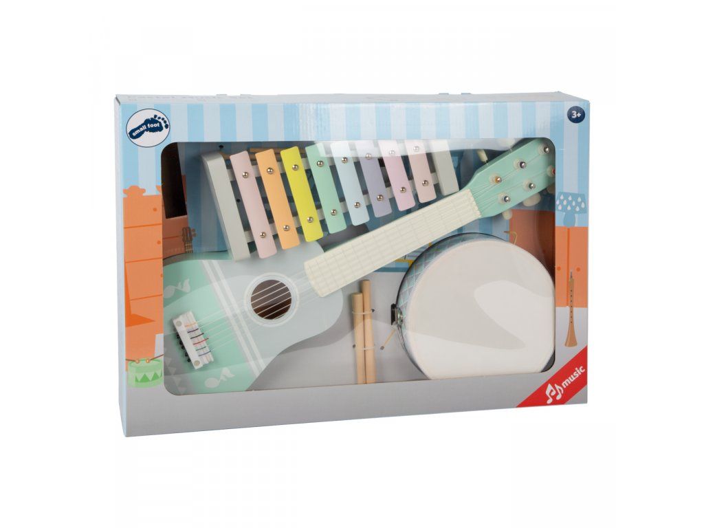 Tento set hudebních nástrojů se skládá z kytary, xylofonu a bubnu v pastelových barvách. S touto hračkou mohou děti získat první zkušenosti s rytmem a zvukem, podporuje také dětskou kreativitu.