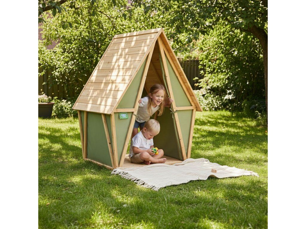 Podlaha je speciálně navržena pro tento domeček a je vyrobena z cypřišového dřeva s certifikací FSC.