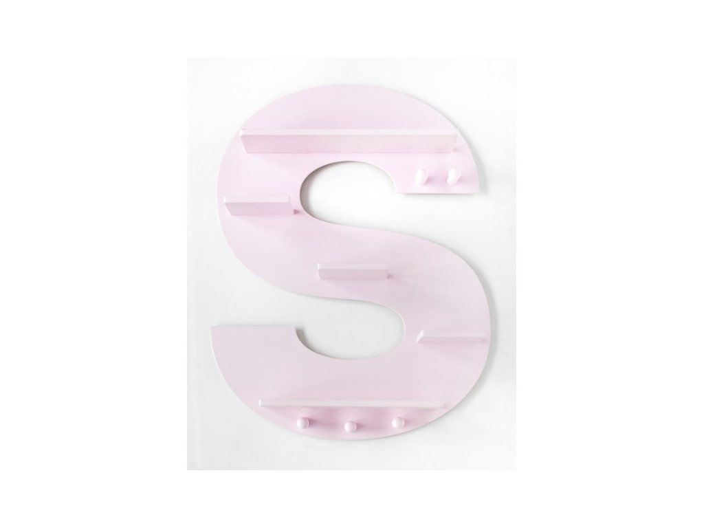 Růžová designová a zároveň praktická polička ve tvaru písmene
