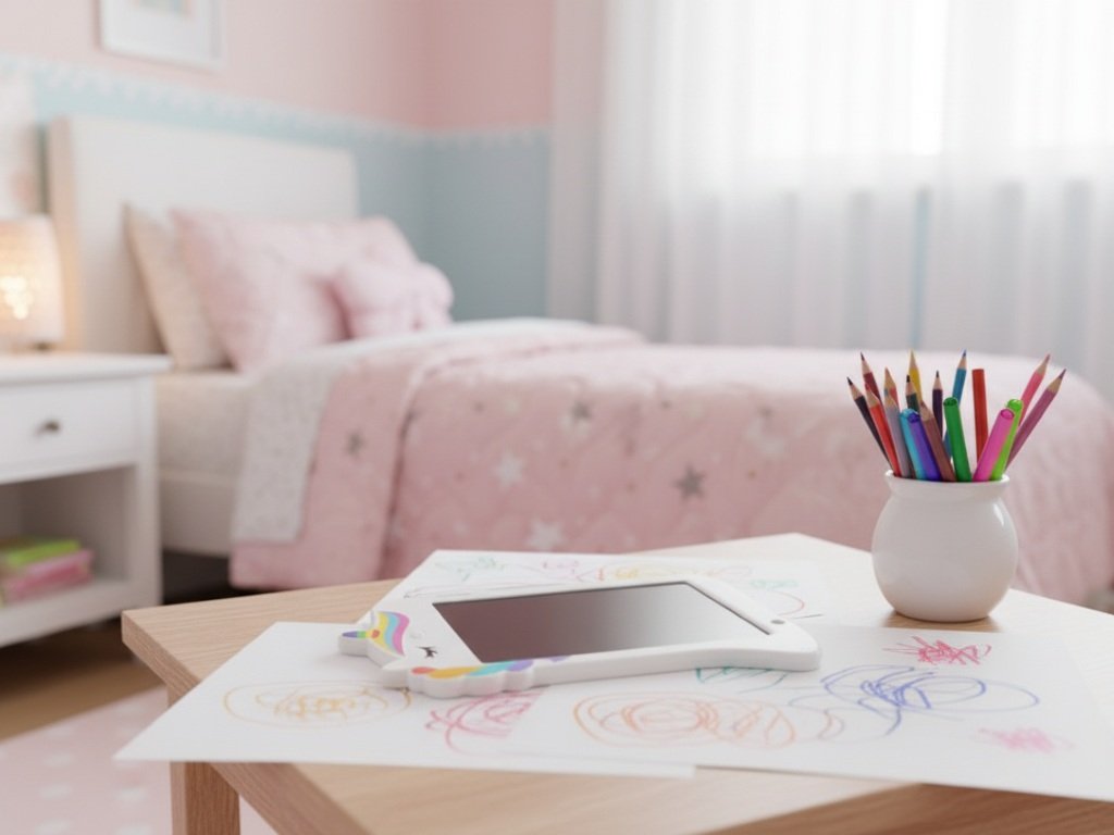 Z prvního tabletu bude nadšené každé dítě toužící po technických vymoženostech. Kreslící tabulka pro děti, v originálním designu, v podobě bílého jednorožce umožní dětem hrát si na tabletu - kreslit a psát stále dokola a dokola. Kreslící tabulka totiž umožňuje kreslit barevná umělecká díla, pochlubit se s nimi, smazat pomocí tlačítka a vytvořit nová. Černá tabulka (tablet) může posloužit i k výuce, k prvnímu seznamování s tvary, písmenky nebo číslicemi. Při hře s tímto tabletem děti rozvíjí svou fantazii a kreativitu, učí se novým znalostem (za pomoci rodičů se seznamují s abecedou, čísly a počty, geometrickými tvary).