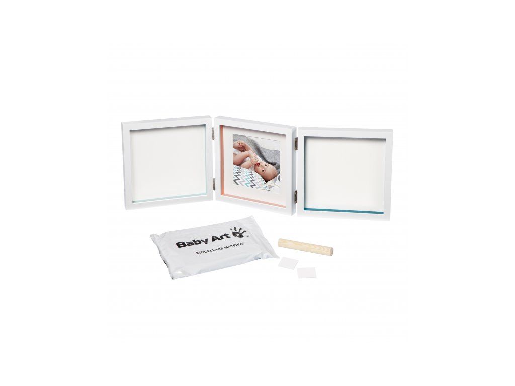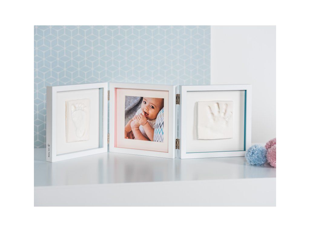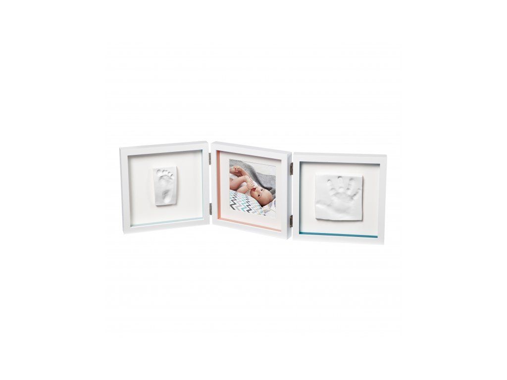 Rámeček nabízí tři oddělené prostory pro fotografii a otisk ručičky a nožičky vašeho miminka. Použití dle přiloženého návodu je jednoduché, rychlé a bez nepořádku. Balení obsahuje rámeček a vše, co potřebujete k výrobě otisku. Výrobek je dermatologicky testován a je pro vaše dítě 100% zdravotně nezávadný.
