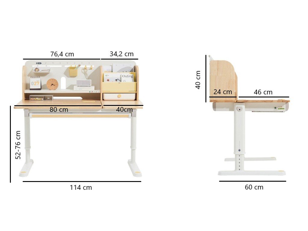 - Výškově nastavitelný (rostoucí) - jednoduše, ručně, nastavíte výšku pracovní desky v rozmezí 52 - 76 cm.