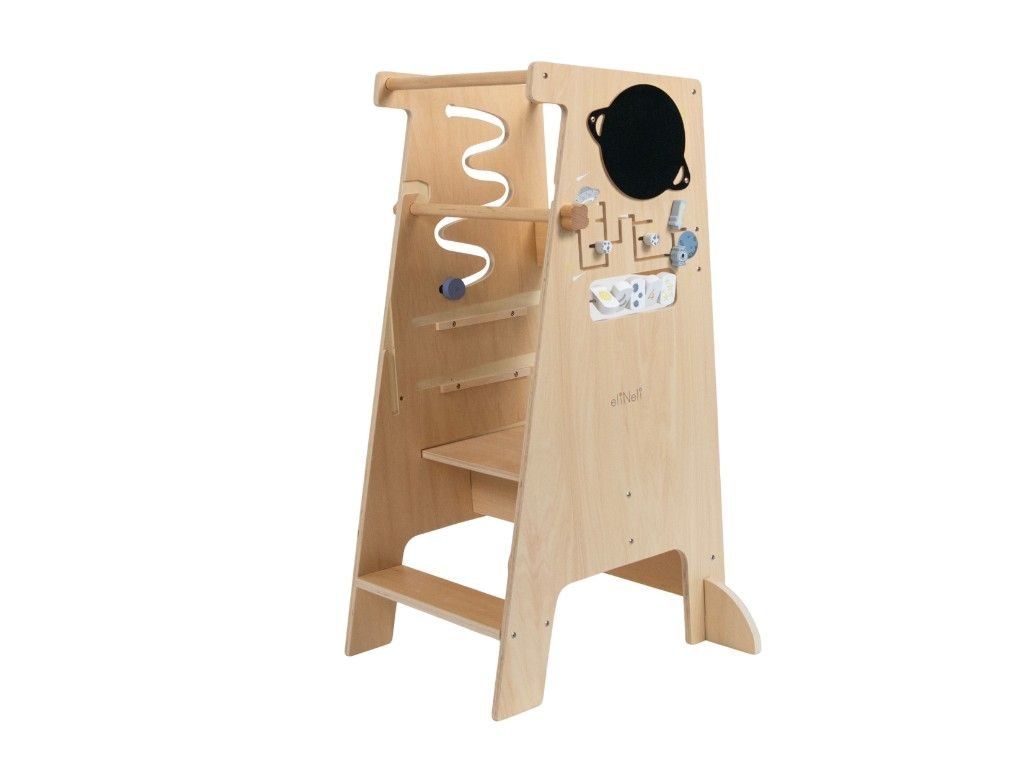 - Multifunkční (5v1) - učící věž, schůdky, set dětského nábytku (židlička se stolečkem), hračka (kreslící tabule, bludiště, otočné prvky, kuličková dráha).
