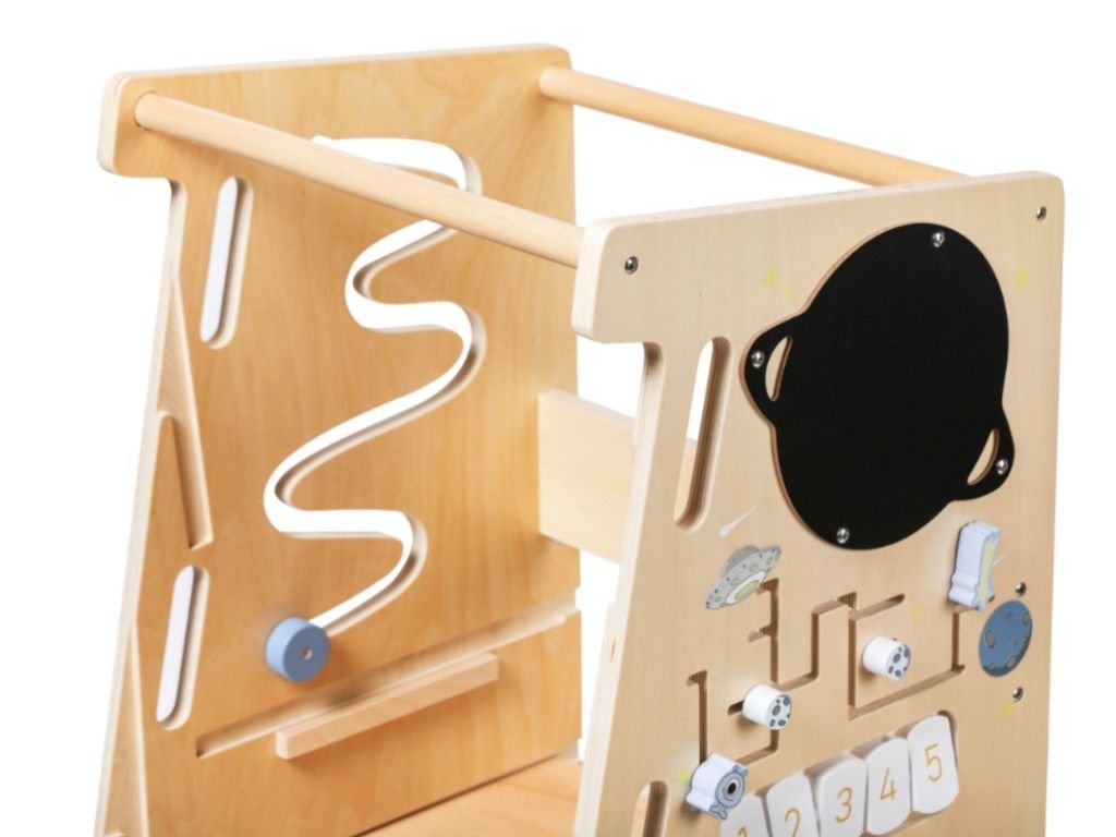 - Multifunkční (5v1) - učící věž, schůdky, set dětského nábytku (židlička se stolečkem), hračka (kreslící tabule, bludiště, otočné prvky, kuličková dráha).