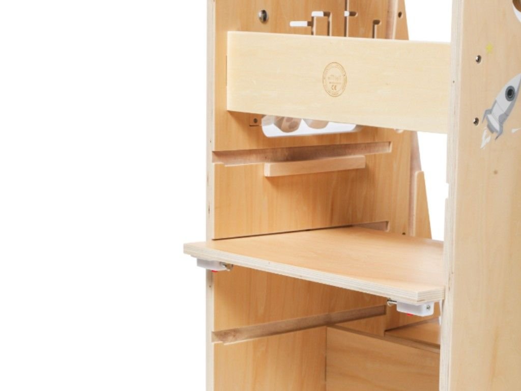- Neutrální barevné provedení - učící věž vyrobená z překližky, ošetřená vodou ředitelným lakem, je praktickým pomocníkem i krásným kouskem dětského nábytku do domácnosti.