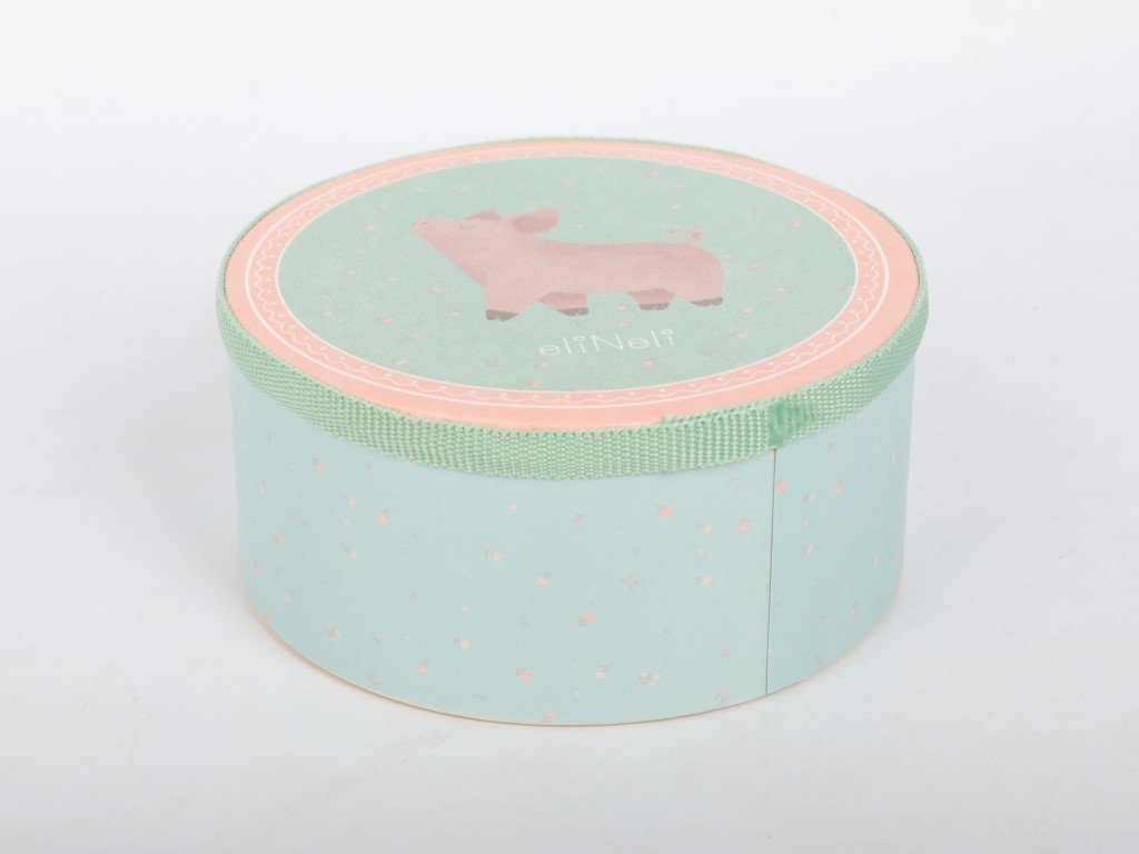 - Neutrální barevné provedení - díky jemným pastelovým barvám v kombinaci s přírodním dřevem a motivu farma je set vhodný pro holčičky i kluky.