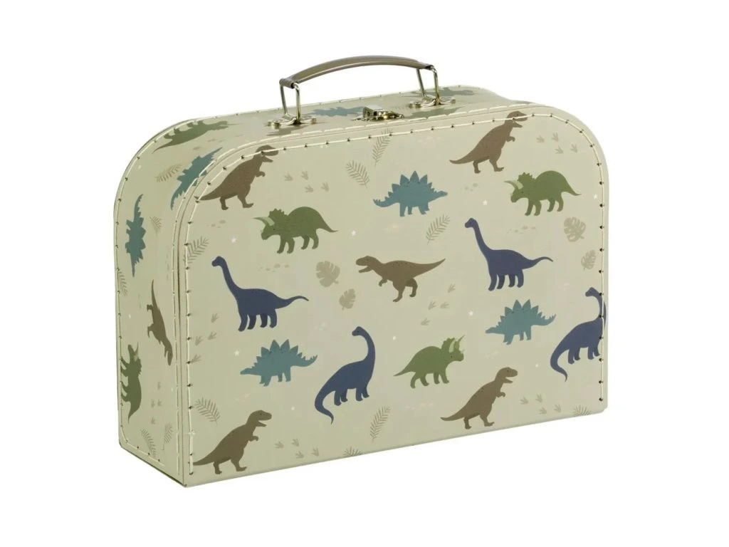 Roztomilá sada dvou kufříků s motivem dinosaurů je ideální pro schovávání malých drobností nebo jako pěkná dekorace do dětského pokojíčku.Sada se skládá ze dvou různě velkých kufříků, které jsou vyrobeny z pevného tvrzeného kartonu s polyesterovým prošíváním.