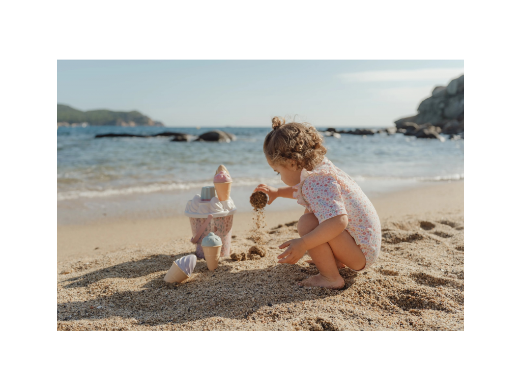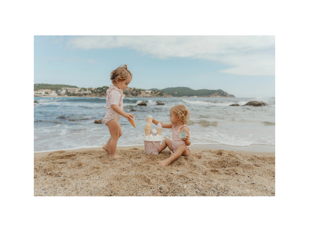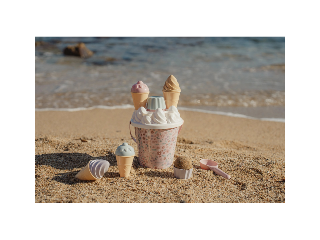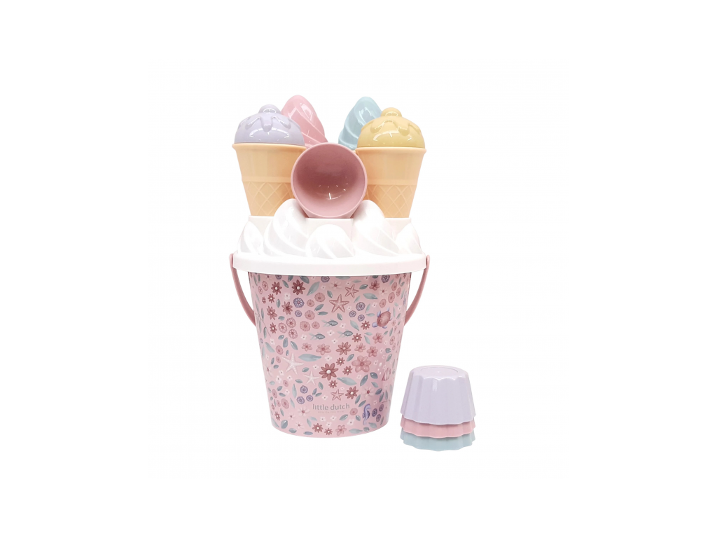 Zmrzlina patří k létu a s touto roztomilou sadou s krásným květinovým potiskem si ji vaše děti vyrobí i z písku. Sadu tvoří kyblík s rukojetí, čtyři kornouty, naběračka na zmrzlinu, sedm formiček a sítko.Sada je součástí designové kolekce Little Dutch Dreamy Mermaid.