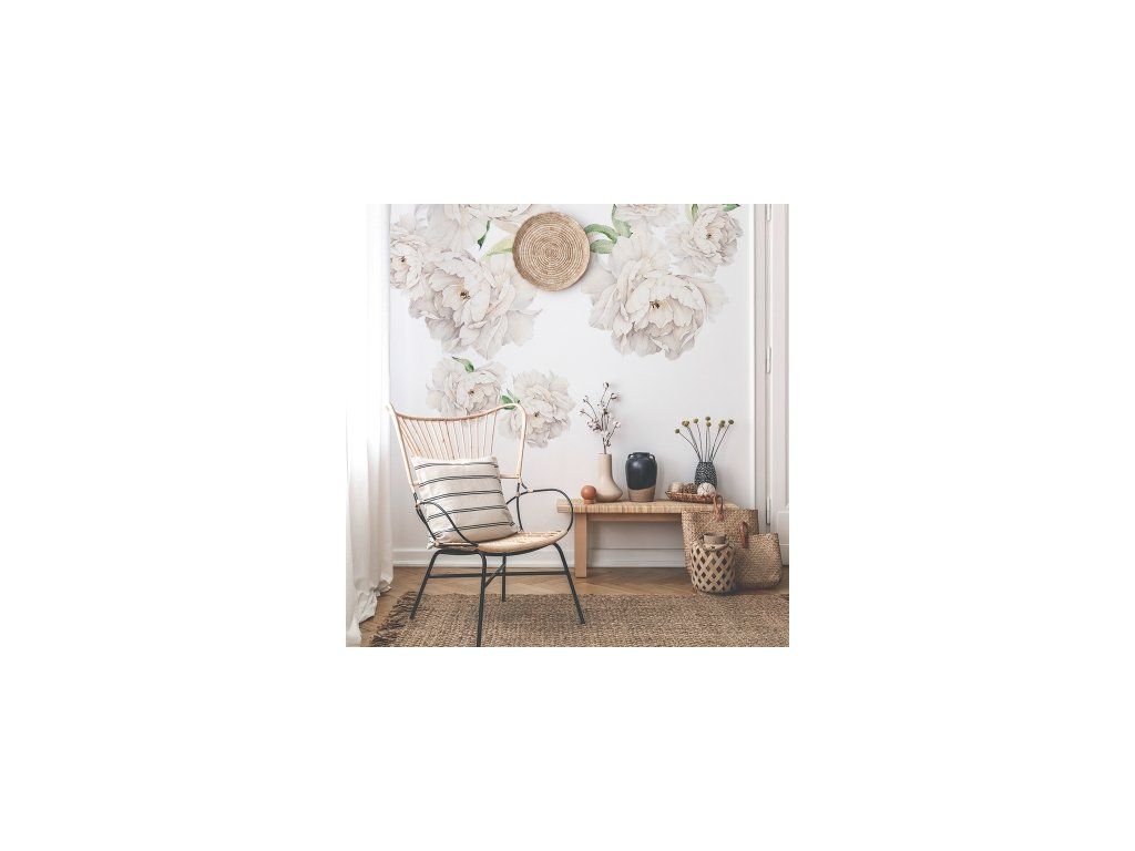 Samolepka na zeď - pivoňky-velké BÍLÉ - BAZAR