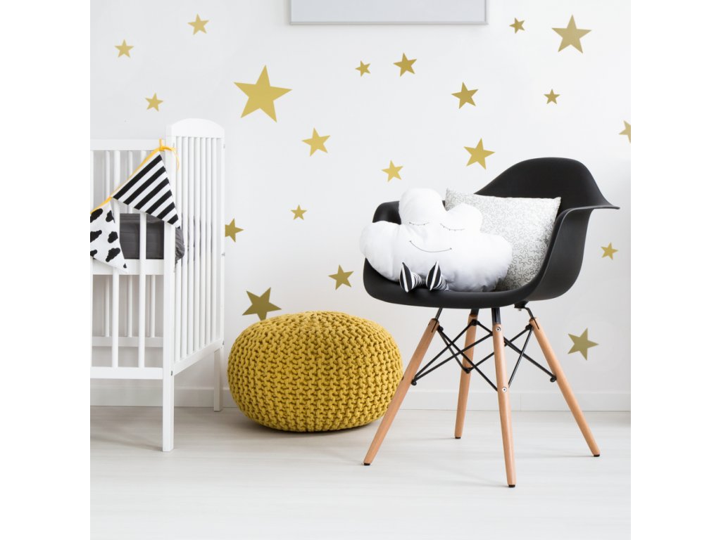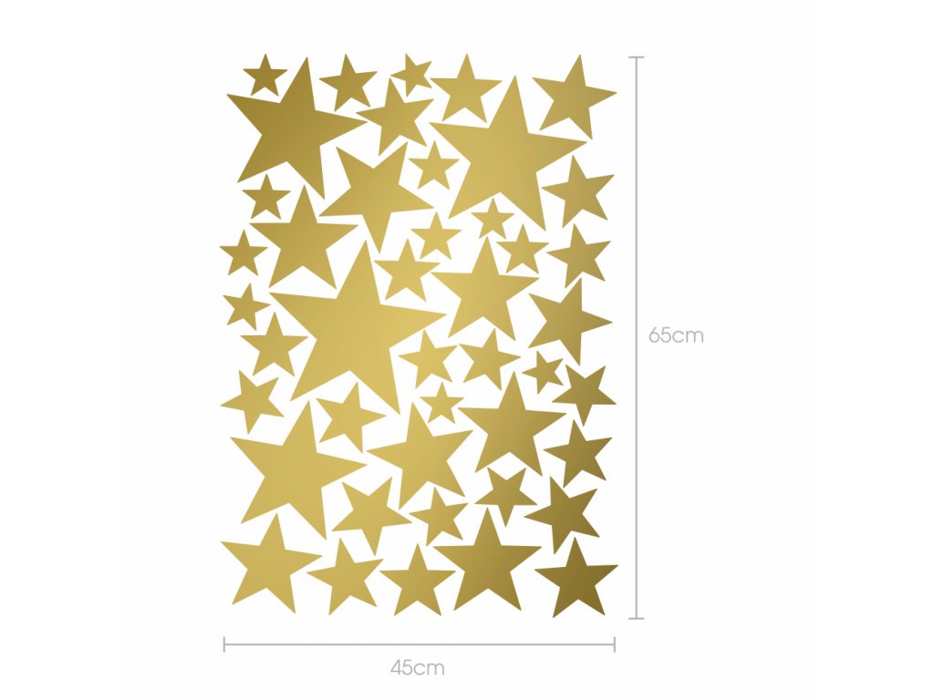 Samolepky - Zlaté hvězdy je jedinečná sada samolepek vysoké kvality a trvanlivosti s hvězdami ve třech velikostech, která může rozveselit a opticky prozářit prostředí, ve kterém vaše ratolesti tráví volný čas, hrají si i odpočívají.