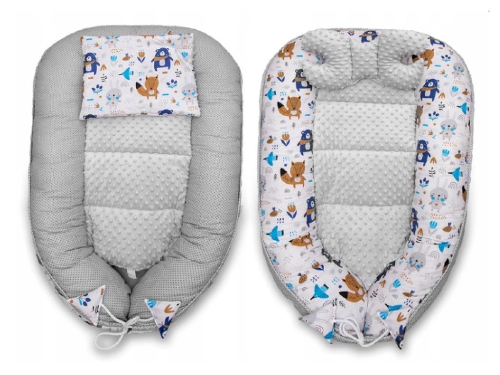 Oboustranné hnízdečko z jemného a hebkého materiálu pohodlně obepne miminko ze všech stran. Dodá mu pocit bezpečí, miminko se bude cítit jako u maminky v bříšku. Své využití najde nejen v dětské postýlce nebo kolébce, ale i v kočárku.