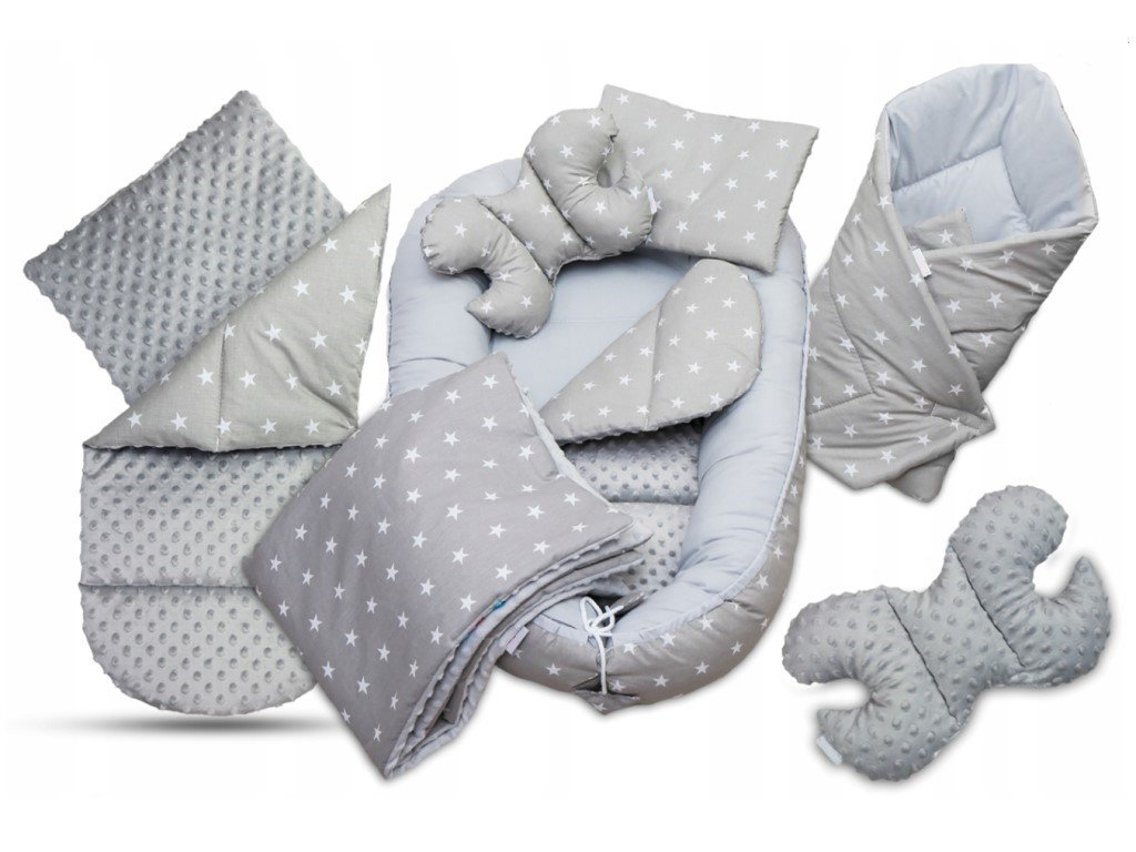 Prohlédněte si úžasnou dětskou 7dílnou sadu do postýlky v neutrálním barevném provedení, s hvězdičkovým vzorem, která obsahuje vše pro maximální pohodlí miminka při ležení, odpočinku i spánku. Set do postýlky je startovací sadou, se kterou můžete přivítat své právě narozené miminko na svět a je krásným dárkem pro nastávající maminky. Hnízdečko, zavinovačka, podložka, polštářky i peřinka jsou ručně vyrobené, s důrazem na každý detail, na maximální pohodlí, komfort a bezpečí právě narozeného miminka. Oboustranné použití umožňuje volbu strany, kterou právě použijete. V teplejším počasí můžete dát přednost straně ušité z certifikované 100% bavlny nejvyšší jakosti, v chladnějších dnech straně s jemnou, hebkou a hřejivou tkaninou minky.