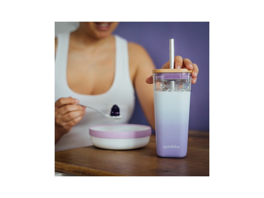 Skleněný cestovní hrnek s brčkem Liquid Cube Lilac Gradient 540 ml