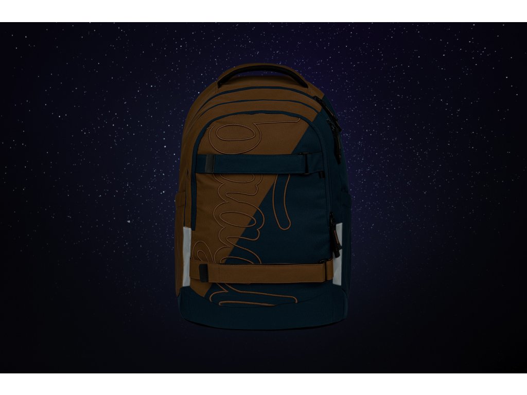 Batoh nabízí tři samostatně uzavíratelné komory s kapsou z jemného sametového materiálu, který ochrání notebook či tablet před poškrábáním. Dvoucestné zipy YKK zajistí snadný a rychlý přístup k obsahu batohu. Nechybí boční kapsy na láhev z pevného materiálu a přívěsek ve tvaru skateboardu, který mohou chlapci nechat na batohu nebo ho využít jako klíčenku. Na přední komoře batohu jsou umístěné dva popruhy na uchycení skateboardu nebo třeba bundy. Samozřejmostí jsou reflexní prvky pro větší bezpečnost dětí.