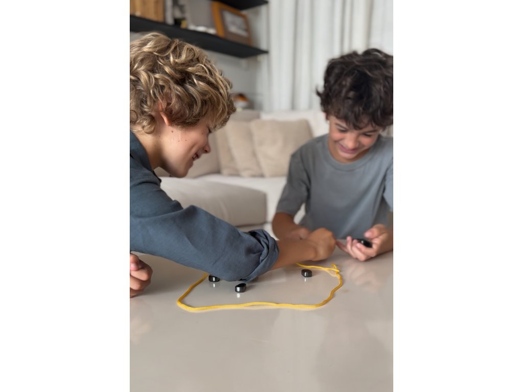Příprava hry Provázkem vytvořte na stole kruhové nebo oválné herní pole. Každý hráč dostane stejný počet magnetických kamenů.