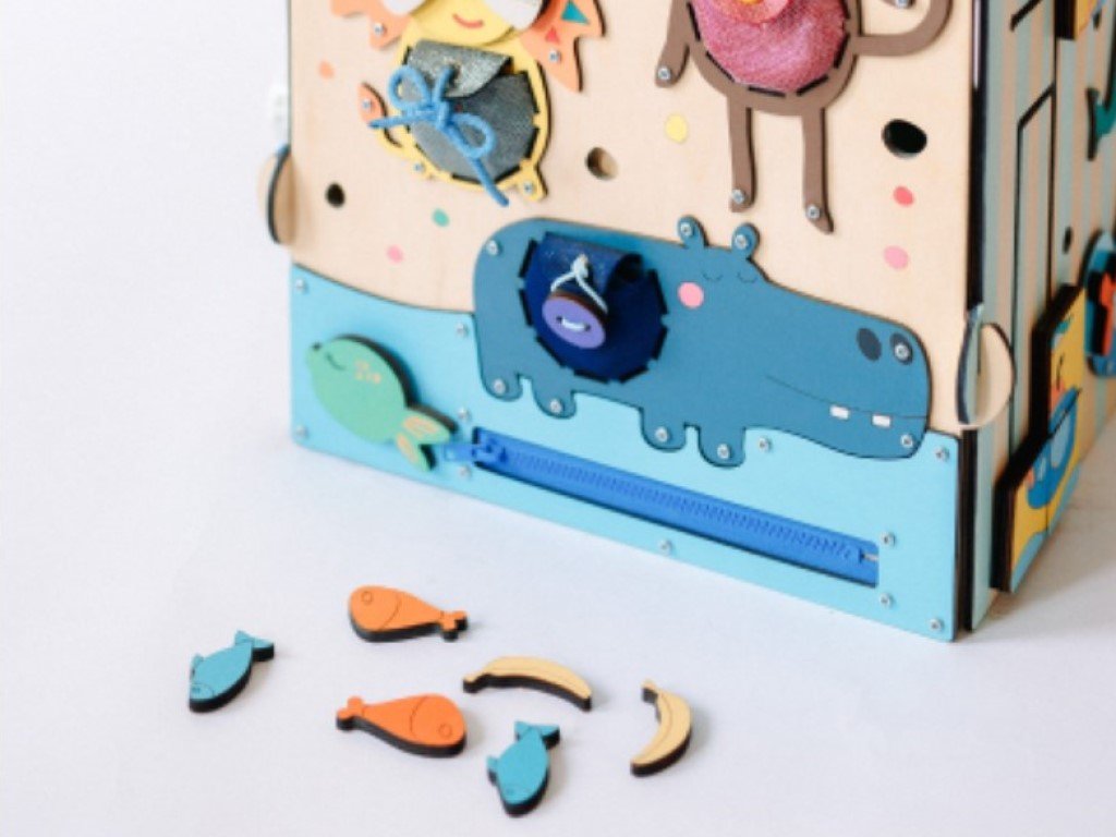 Activity board domeček ZOO je složen ze šesti desek s hracími a montessori prvky zaměřenými na zručnost, logiku, kreativitu a trpělivost. Domeček vtáhne děti do světa objevování a fantazie, kde si děti samy hrají a učí se tím nejpřirozenějším způsobem, pomocí hry.