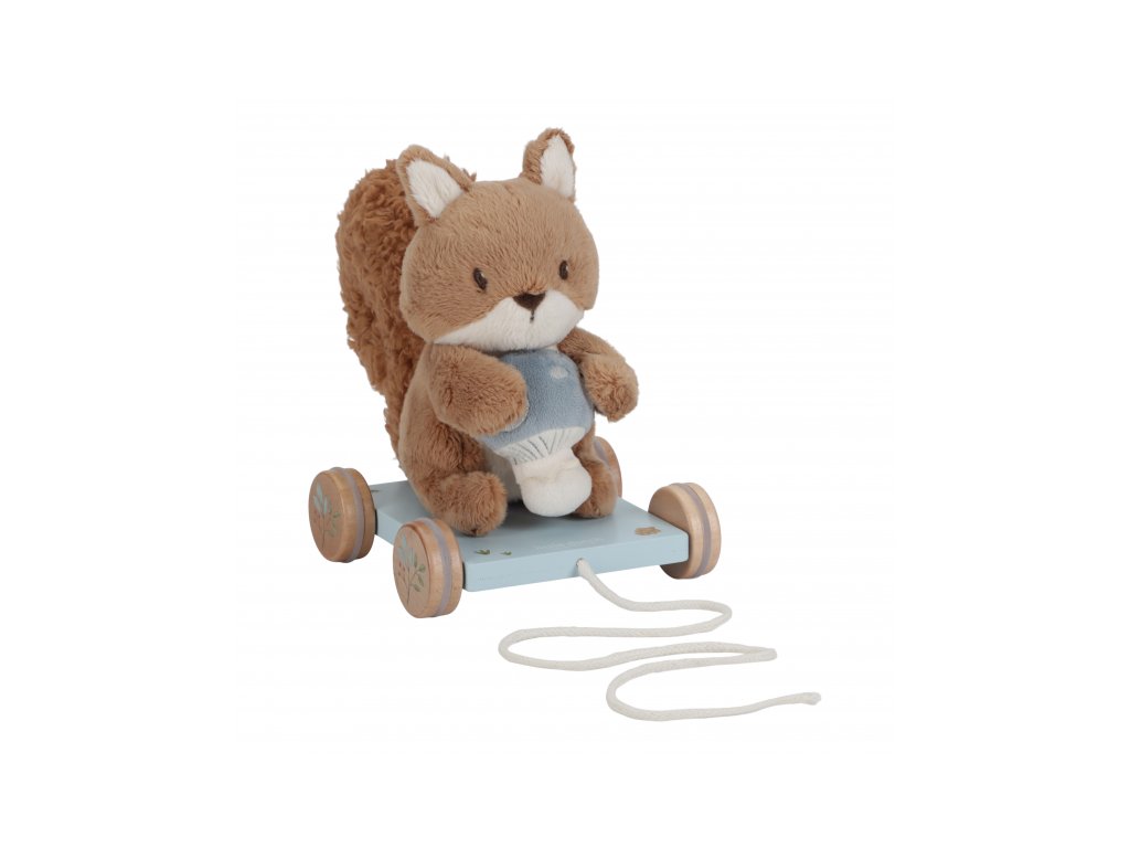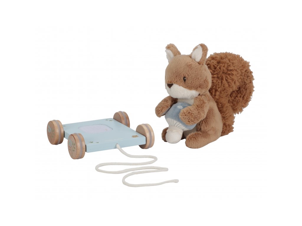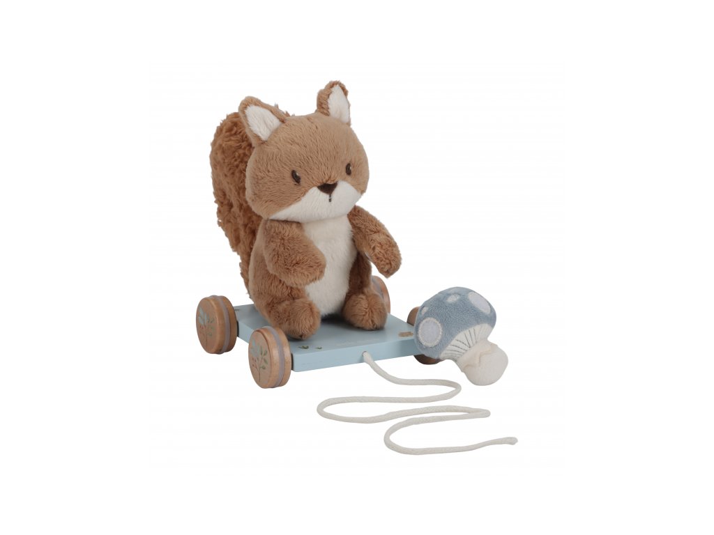 Plyšová veverka na kolečkách má šňůrku, aby ji dítě mohlo tahat za sebou. Veverka je připevněna k vozíčku s pomocí suchých zipů a je možné ji snadno oddělit a používat samostatně.Hračka je součástí designové kolekce hraček a doplňků Little Dutch Fairy Garden inspirované životem na zahradě.