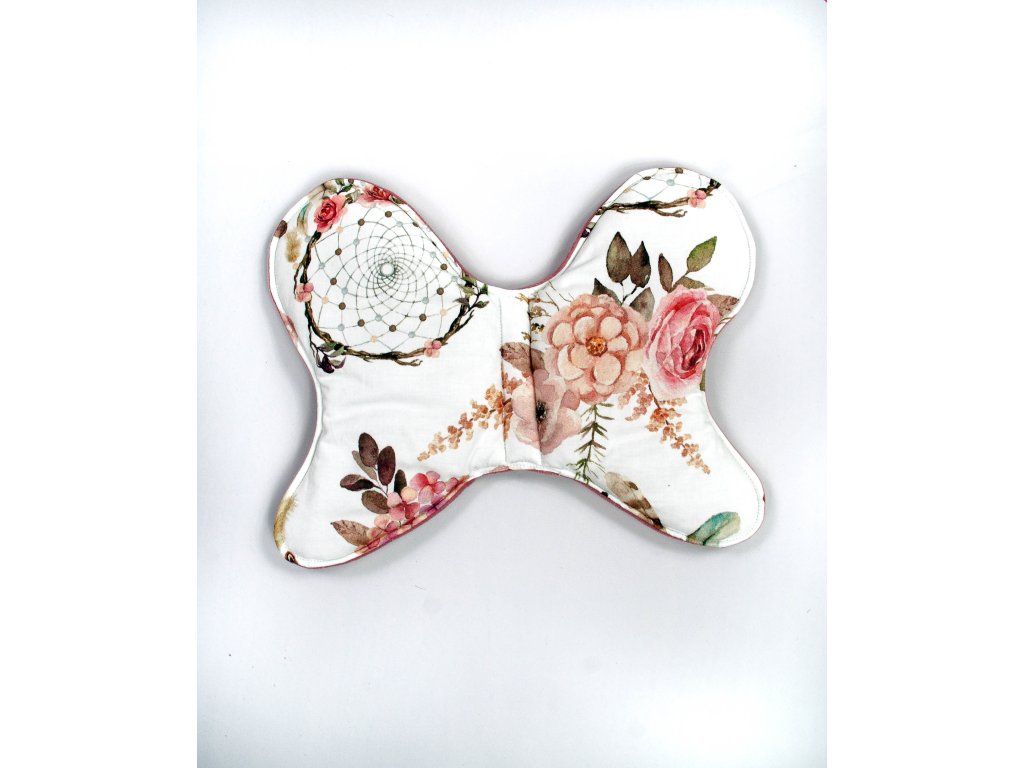 Komplet s měkkým a plochým polštářem pro kojence ve tvaru motýlích křídel.