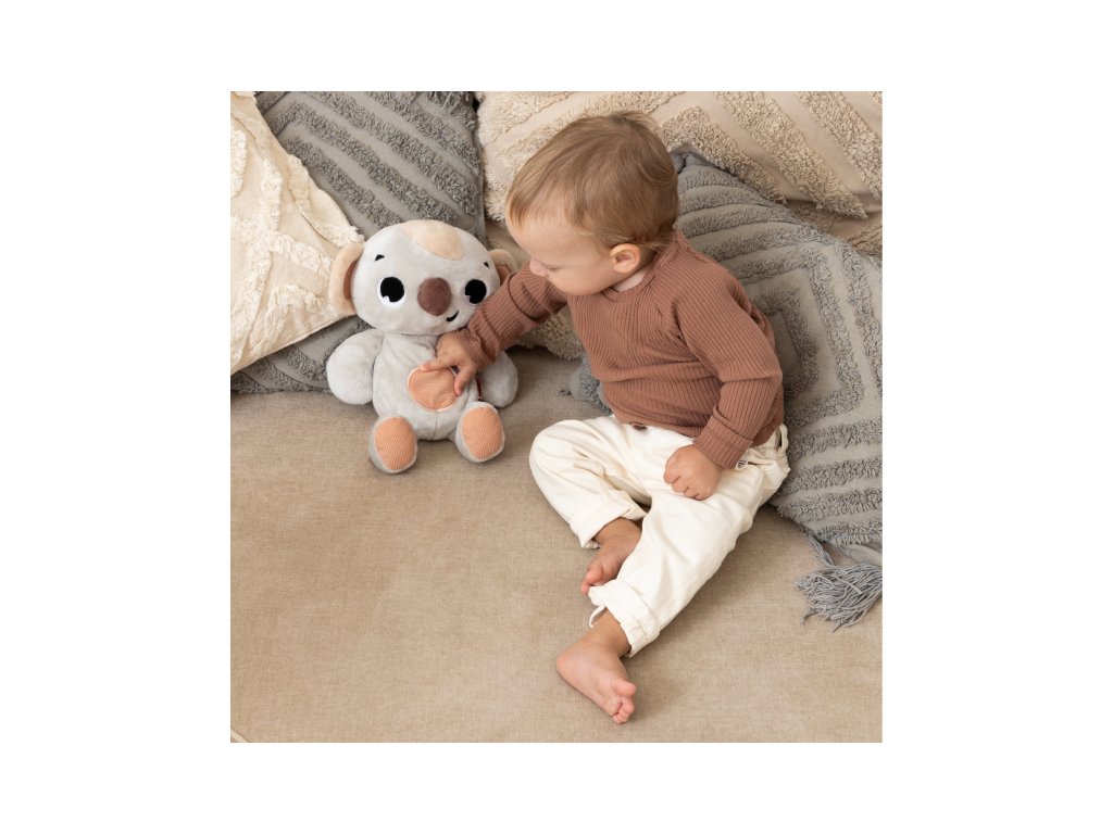 Roztomilý usínáček koala od Tiny Love pomáhá miminku klidně usnout a cítit se v bezpečí doma i na cestách. Kombinuje jemné světlo, uklidňující zvuky a realistické pohyby dechu, které navozují pocit přítomnosti a klidu.Multifunkční usínáček - spojuje plyšovou hračku, noční světýlko a hudební přehrávač v jednom