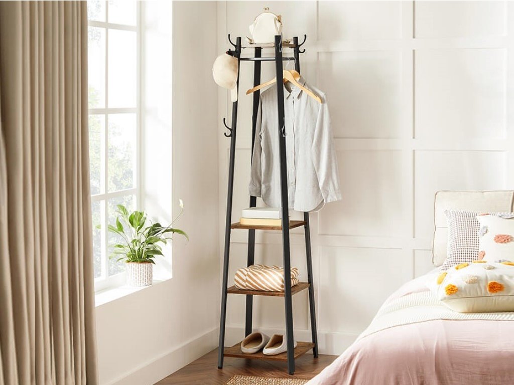 Věšák (stojan) na oblečení v industriálním stylu - s policemi