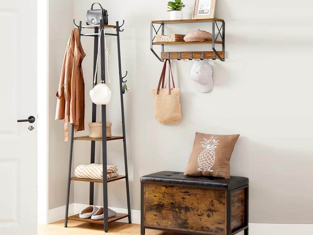 - Industriální styl - originální design, ocelový rám a police v rustikálním vzhledu, dodávají věšáku jedinečný styl.