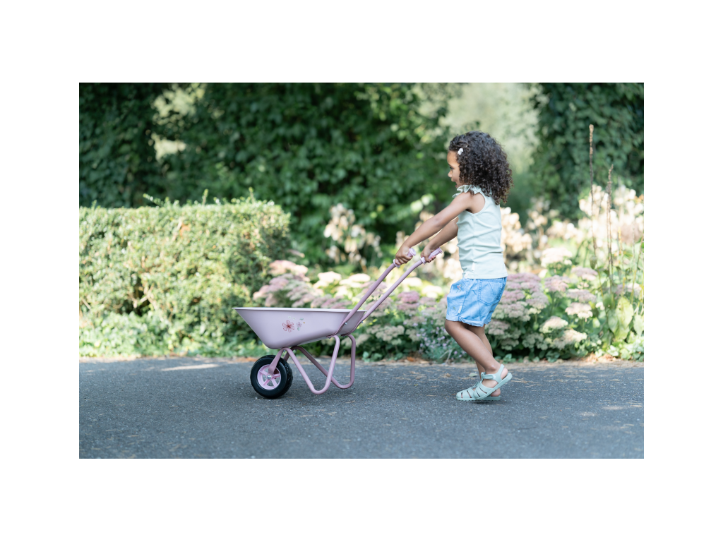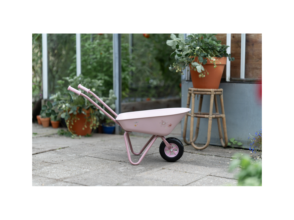 Naložit a přivézt hlínu na záhonek či odvézt shrabané listí bude s tímto kolečkem zábava! Kolečko s krásným květinovým potiskem je vyrobeno z kvalitního kovového materiálu s plastovým kolem pro snadnou jízdu. Plastové rukojeti umožňují snadné uchopení.Kolečko s krásným potiskem je součástí designové kolekce hraček a doplňků Little Dutch Fairy Garden, inspirované životem na zahradě.