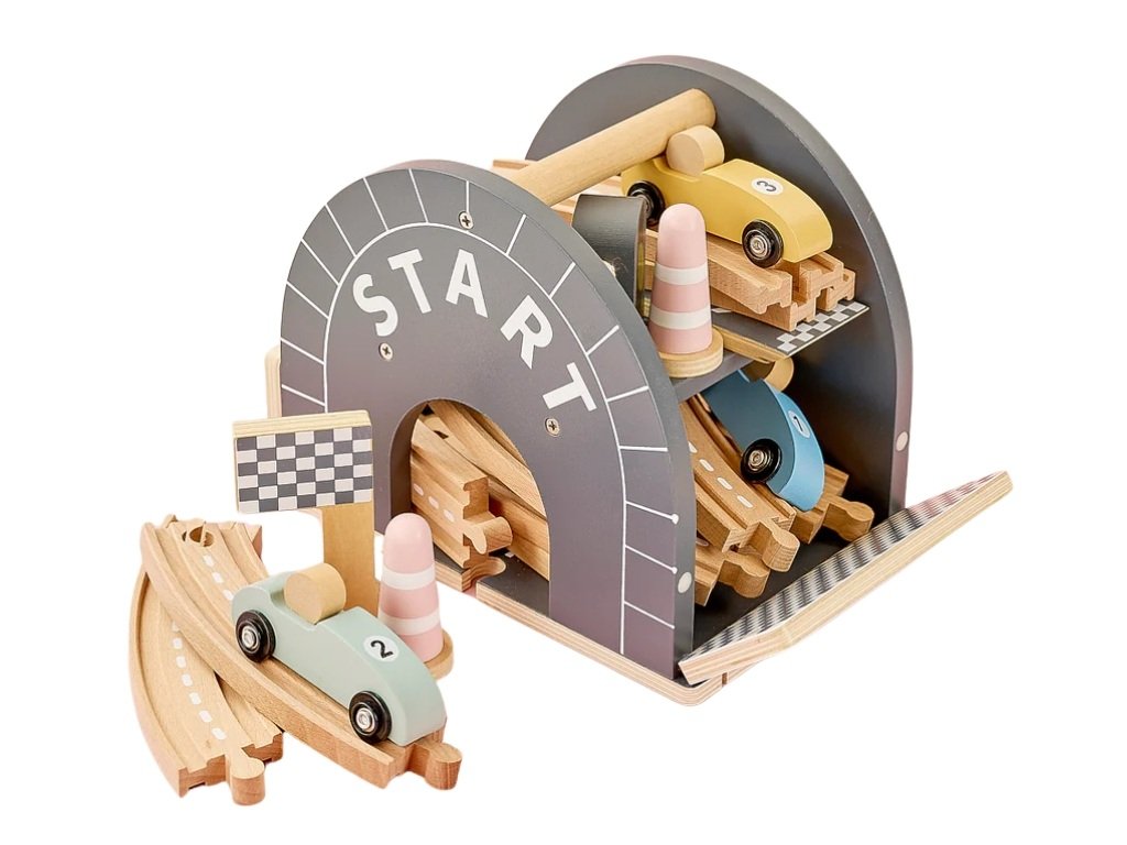 Závodní dráha je prakticky uložená v boxíku a velmi dobře promyšlená. Děti si s ní dlouho vyhrají, snadno se skládá a kvalitní zpracování je znát na první pohled.