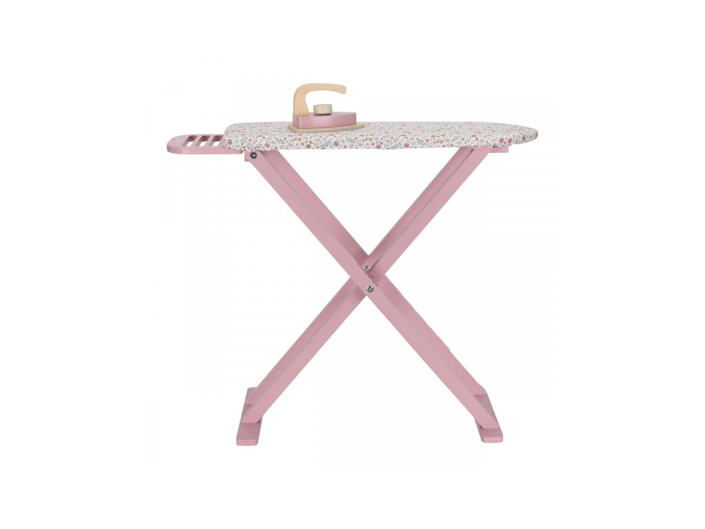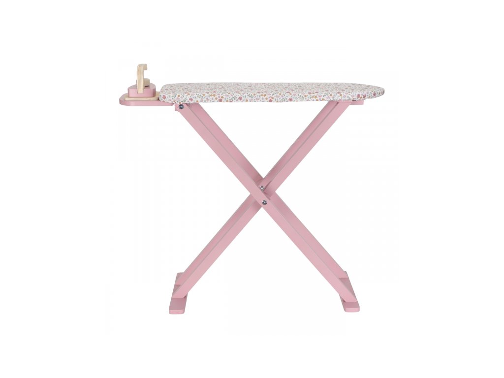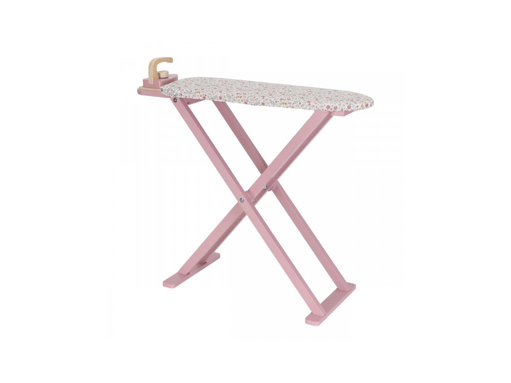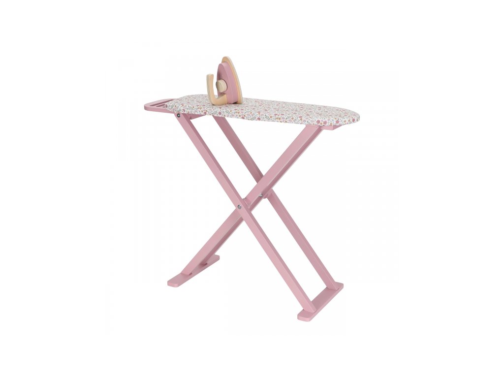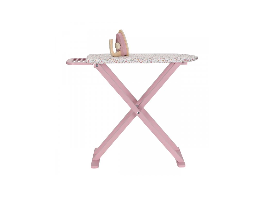 Žehlení oblečení panenkám bude radost s tímto krásným dřevěným žehlicím prknem a žehličkou. Skládací prkno je s textilním potahem s něžným květinovým potiskem vypadá jako opravdové, realisticky působí i barevně sladěná dřevěná žehlička.Děti mohou hraním s žehličkou napodobovat dospělé a poznávat svět domácnosti zábavnou formou.