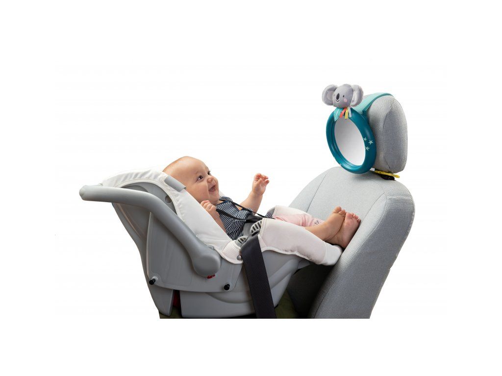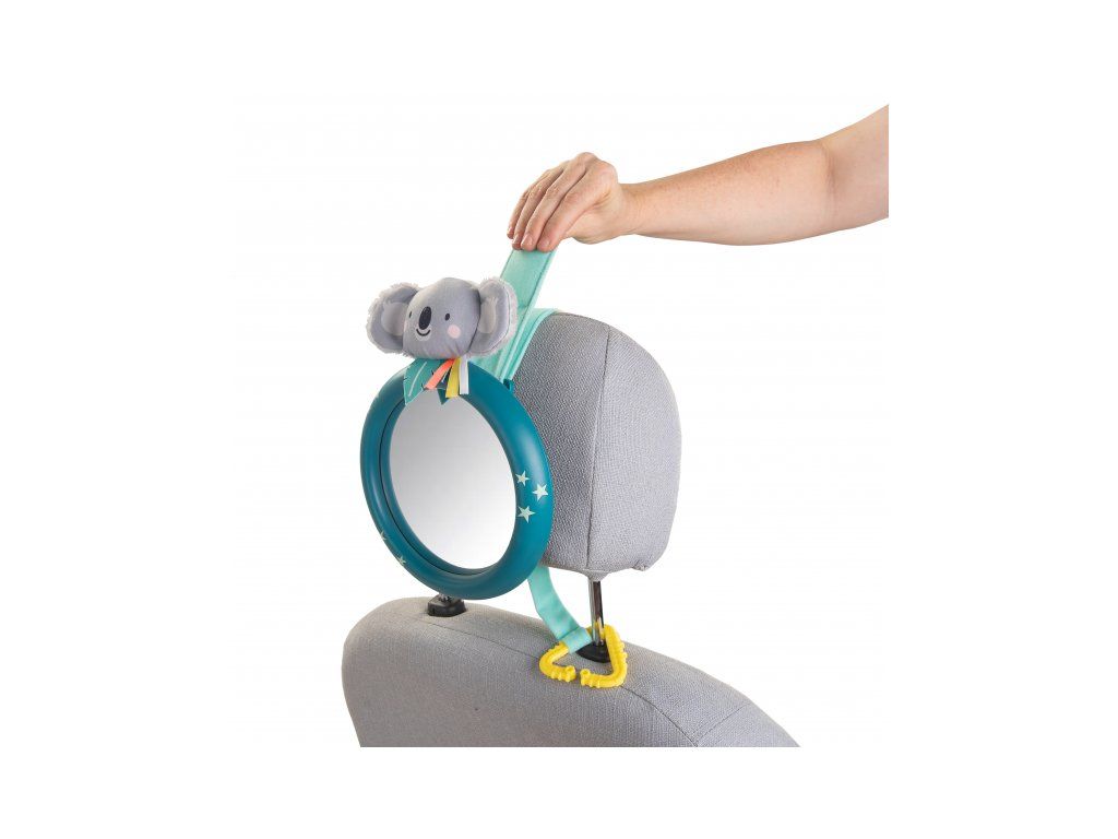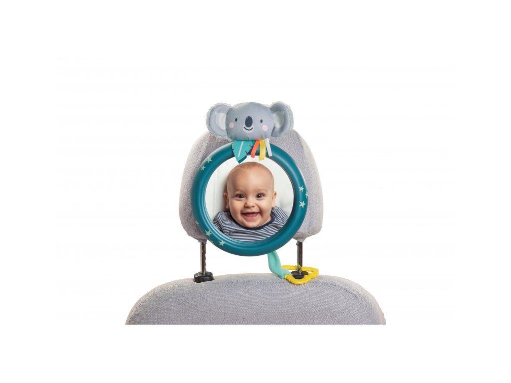 Zrcátko s roztomilou koalou se snadno připevňuje suchými zipy k opěrce hlavy na zadním sedadle.