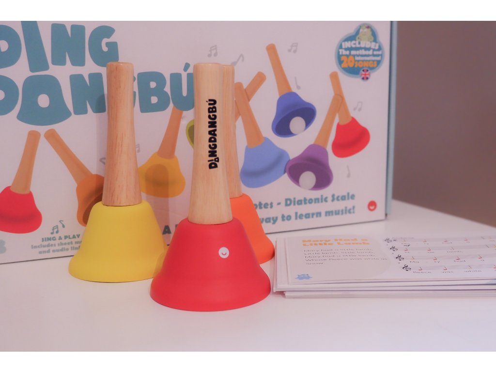 Zvonečky do ruky DingdangBú jsou klasická zvonkohra pro děti, která umožňuje objevovat hudbu přirozeně a hravě. Tato sada osmi dětských zvonků laděných do diatonické stupnice nabízí čistý, jasný a příjemný zvuk – žádné náhodné cinkání, ale skutečné tóny a skutečné melodie.