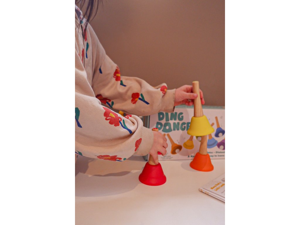 Zvonečky do ruky DingdangBú jsou hudební hračka pro děti, která podporuje spolupráci, radost a kreativitu. Jsou jednoduché, kvalitní a opravdu hudební – přesně takové, jaké by měl první dětský hudební nástroj být.